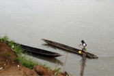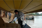 There were large areas of shallows where the speed of the fast moving current was more obvious. At times the current seemed to be too much for the motor but using the shoreline as a visual reference, we were obviously making progress. Along the riverbanks we observed human activities. People cooking or loading what appeared to be bags of crops into dugouts. More evidence that the river was a mainstay of commerce and transportation.