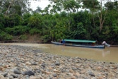 From earlier glimpses we had deduced that the river was quite wide, but we didn’t appreciate just how wide until we were standing on the bank. Clearly, this was every bit as wide as the Mississippi, and had a very strong current. Ecuadorians who lived on or near the Río Napo used it as a principle means of transportation, mainly in long dugout canoes. Several canoes were observed maneuvering up and down river.