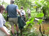 We were again on the same highway we had taken down to Gareno a few days earlier. After a couple of hours driving we stopped at a large bridge over the Río Cosanga. Any ducks? This time seemed to be the charm. A drake TORRENT DUCK was spotted diving from rocks and swimming in the river. It took some searching before the whole group was able to find the rapidly moving duck. Back on Day 3, Mike and Richard had seen a female Torrent Duck, which everyone else had missed. Tonight, everyone was going to be able to add this prized target bird to their checklist.