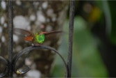 After an hour, and with daylight now upon us, we trekked back to the lodge for breakfast where we were mesmerized by the constantly changing eye candy mobbing the hummingbird bird feeders on the upper observation deck. TAWNY-BELLIED HERMIT, BROWN VIOLET-EAR, ANDEAN and WESTERN EMERALD, GREEN-CROWNED WOODNYMPH, RUFOUS-TAILED HUMMINGBIRD, SPECKLED HUMMINGBIRD, FAWN-BREASTED and EMPRESS BRILLIANT, BROWN INCA, BUFF-TAILED CORONET, GORGETED SUNANGEL, a rare visit by a HOARY PUFFLEG; PURPLE-BIBBED WHITETIP, BOOTED RACKET-TAIL, a stunning VIOLET-TAILED SYLP, and two WOODSTAR: PURPLE-THROATED and WHITE-BELLIED. 18 species of hummingbird in about a half hour (we would total 20 for the day)! It’s understandable why we were barely able to eat given all the distractions!