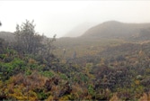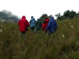 Forging ahead, we reached the summit and the antenna farm. It was now 9:00 AM and as foreseen by José, thick clouds began to close in around us obscuring the view. We encountered a couple of heavily dressed guards who posed for pictures. They probably had seen birders all the time and doubtless have the view that we must be nutty folks. Nutty and harmless. The guards have to work in the cold and fog – we chose to be there as part of our vacation? What must they think.