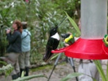 Barely a stone’s’ throw from the lodge parking lot, we found ourselves confronted with multiple hummingbird feeders situated just off a patio in front of Guango’s main entrance. Ah! This was more like it! New to the trip birds: GREEN VIOLET-EAR, CHESTNUT-BREASTED CORONET, TOURMALENE SUNANGEL, GLOWING PUFFLEG, VIRIDIAN METALTAIL, BLUE-MANTLED THORNBILL, LONG-TAILED SYLPH, and WHITE-BELLIED WOODSTAR. Repeat looks at Sword-billed Hummingbird and Collared Inca were crowd pleasers. Standing less than a foot away from a Sword-billed Hummingbird maneuvering around a feeder was nothing short of amazing.