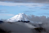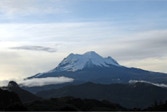 Niko, shifting gears like crazy, coaxed our bus up the paved two-lane highway until we reached the top of the pass. Parking in a pull-off near a small religious shrine, we breathed in the view. Wow. With the sun just starting to appear over the horizon, in the distance, was our old friend Antisana. Any complaints from the night before about having to get up so early quickly evaporated.
