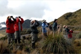 Niko turned the bus around and we started back down, stopping at a wet meadow where we fanned out to try and flush Andean Snipe, which are said to be widespread in páramo. Apparently not so widespread. At least they were in no mood to be flushed that morning. However, we did enjoy walking through a very wet and at times boggy páramo admiring the variety of sedge grasses, cushion plants, mosses and lichen. Close to 60% of the all plant species we found in páramo grow nowhere else in the world.