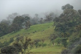 The road cut through cloud forest. Today the emphasis was on the cloud part. It was overcast, a bit windy, and misting. Dressing in layers was mandatory. When José determined where we should stop, we unloaded and began walking back downhill. Birding was a bit difficult considering the weather but we did manage to add: VIRIDIAN METALTAIL, RED-CRESTED COTINGA. This would be the last day for adding Tawny Antpitta to our daily checklist.
