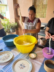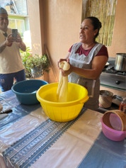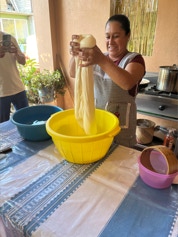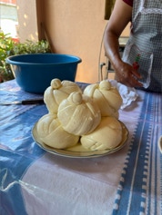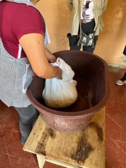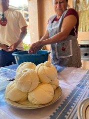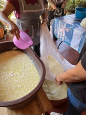 On the same day we visited the home of the papermaker, we visited the home of a woman who makes fresh cheese daily for an explanation and demonstration on making cheese. The finished cheese is made into long strips made into a ball - similar in appearance to a skein of yarn