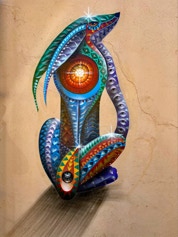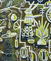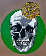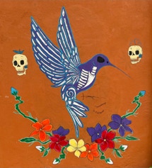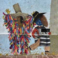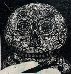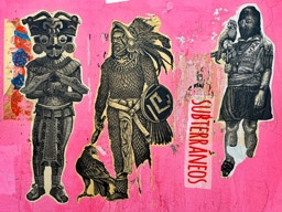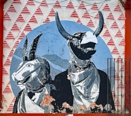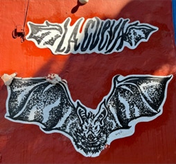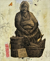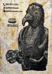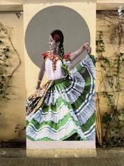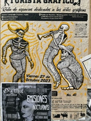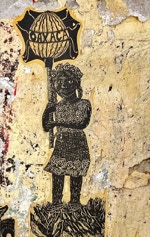 Lapiztola is a collective that creates vibrant, layered works with stencils and paint. Their graphics are typically focused on the indigenous identity of Oaxaca. Images of corn are included in order to show respect for the local domestication of this food source. The paliacate is also present in their designs – a bandana that’s associated with the strength and resistance of the Zapatista revolutionary movement.