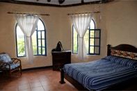 Rather than numbered rooms, they were identified with a small painting on each room door representing the room's theme – ours was “Shark”. Keys were attached to hand-painted wooden key fobs (the fobs also represented a room's theme). Don't lose the fob, though, for it would result in a fifty dollar charge. Rooms had large screened windows that offered a dramatic view of the pool and/or the ocean beyond. Most rooms also had small private verandas.