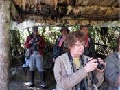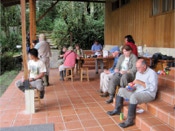 Field research is conducted at all Jocotoco reserves but we rarely got to meet any of the folks collecting data. Tapichalaca proved to be the exception. Two brothers - their parents originally from Wisconsin - were collaborating on an antpitta study under the direction of Harold Greeney from the Yanayacu Biological Station in northern Ecuador (we had met Harold during our 2008 tour). The lads were entering data on their laptops when we bumped into them. They had recently collected video of a Jocotoco Antpitta vocalizing on a nest – the first ever video recorded. We were able to watch part of the video – how exciting! Carol took their photo and got their parent’s email address, promising to send their photo (she did upon our return – the brother’s parents were very pleased).
