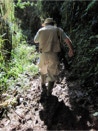 Leaving Poncho behind, we pushed forward on the trail. It quickly became obvious that this portion of the trail was less developed. At times we found ourselves calve-deep in sucking mud trying to keep our balance. Where the trail split into other trails, signs for the new trailheads rated them as “difficult”. Ours was rated “easy.” Easy? You must be kidding! Fortunately no one took a serious tumble.