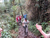 Off the bus, we walked up a dirt road to the trail entrance. The trail was steep and made muddy from rain. Definitely a boot day.