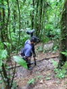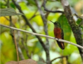 We had to take the same trail back and saw many of the same birds we had going out. Another (or the same) White-throated Quail-Dove was seen very briefly walking ahead on the trail for a short distance before it evaporated into the underbrush. A Chestnut-naped Antpitta popped up out of nowhere – and popped back just as quickly. An added bonus: We found fresh Puma tracks on our muddy trail!