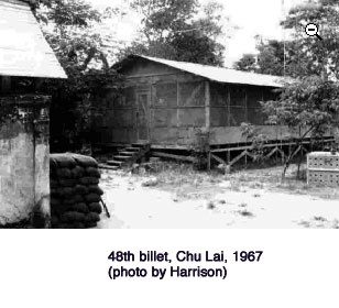 On 12 April 1967, the 48th moved with the 196th LIB to Chu Lai to become part of Task Force Oregon, which later became the 23rd Infantry Division (Americal). In December of 1967, Lt. Gerald W. Vosbury assumed command. While the majority of handlers and all the dogs were located at forward area (LZ Baldy), a small footprint (the “rear area”) consisting of a raised tent located next to the 196th Brigade APO in Chu Lai. It was staffed and used to coordinate supplies for the forward area on LZ Baldy and for temporary overnight housing when supply runs from Baldy to Chu Lai were made on Highway 1.