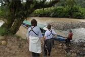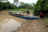 The feeling of balance on the boat was like that of a canoe – “tippy”. It didn’t exude a lot of confidence. Miguel, our boatman, fired up the outboard, shoved off, and we began our journey up river.