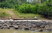 There were large areas of shallows where the speed of the fast moving current was more obvious. At times the current seemed to be too much for the motor but using the shoreline as a visual reference, we were obviously making progress. Along the riverbanks we observed human activities. People cooking or loading what appeared to be bags of crops into dugouts. More evidence that the river was a mainstay of commerce and transportation.
