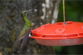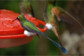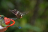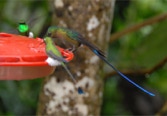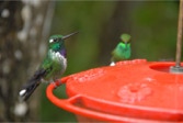 After an hour, and with daylight now upon us, we trekked back to the lodge for breakfast where we were mesmerized by the constantly changing eye candy mobbing the hummingbird bird feeders on the upper observation deck. TAWNY-BELLIED HERMIT, BROWN VIOLET-EAR, ANDEAN and WESTERN EMERALD, GREEN-CROWNED WOODNYMPH, RUFOUS-TAILED HUMMINGBIRD, SPECKLED HUMMINGBIRD, FAWN-BREASTED and EMPRESS BRILLIANT, BROWN INCA, BUFF-TAILED CORONET, GORGETED SUNANGEL, a rare visit by a HOARY PUFFLEG; PURPLE-BIBBED WHITETIP, BOOTED RACKET-TAIL, a stunning VIOLET-TAILED SYLP, and two WOODSTAR: PURPLE-THROATED and WHITE-BELLIED. 18 species of hummingbird in about a half hour (we would total 20 for the day)! It’s understandable why we were barely able to eat given all the distractions!