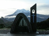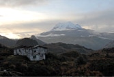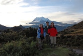 Niko, shifting gears like crazy, coaxed our bus up the paved two-lane highway until we reached the top of the pass. Parking in a pull-off near a small religious shrine, we breathed in the view. Wow. With the sun just starting to appear over the horizon, in the distance, was our old friend Antisana. Any complaints from the night before about having to get up so early quickly evaporated.