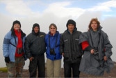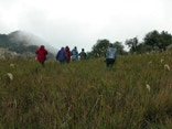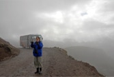 Forging ahead, we reached the summit and the antenna farm. It was now 9:00 AM and as foreseen by José, thick clouds began to close in around us obscuring the view. We encountered a couple of heavily dressed guards who posed for pictures. They probably had seen birders all the time and doubtless have the view that we must be nutty folks. Nutty and harmless. The guards have to work in the cold and fog – we chose to be there as part of our vacation? What must they think.