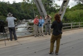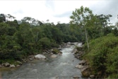 We slipped and skidded our way back down the embankment. On our way to the parking lot, we heard BLUE-CROWNED MOTMOT calling. After instructing Niko which bags should remain on the bus, we were led down a precipitous winding trail comprised of a series of steep steps carved into a slope. At the bottom of the trail we encountered a narrow wobbly wooden bridge, which crossed the Río Gareno. The one hard and fast lodge rule about the bridge: only one person cross at a time. And oh, yes, - don’t lean too hard (or at all!) on the railing.