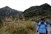 Just after daybreak we rode the bus several kilometers up a narrow road located behind and above lodge property. According to a map of the trail displayed on a wooden sign, one could hike the road, and connecting trail system, all the way to Antisana Volcano and beyond to Cotopaxi, a journey that would take a minimum of five days. Tempting – but our time was limited to just a few hours.