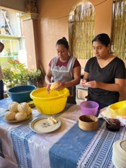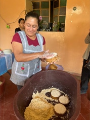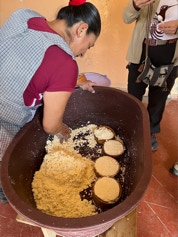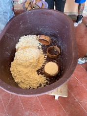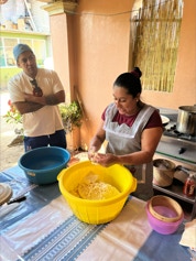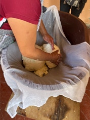 On the same day we visited the home of the papermaker, we visited the home of a woman who makes fresh cheese daily for an explanation and demonstration on making cheese. The finished cheese is made into long strips made into a ball - similar in appearance to a skein of yarn