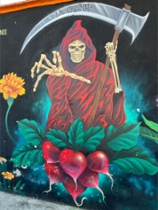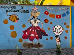 In order to peruse dynamic public works, one is able to navigate the streets of Oaxaca solo which is what we did, or, participate in a guided tour. Street art is on every corner although there’s not so much in the historic city centre since most of the buildings are protected but outside of this, there’s tons to be found in the surrounding barrios.