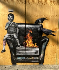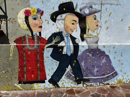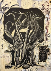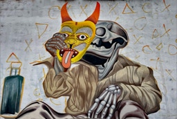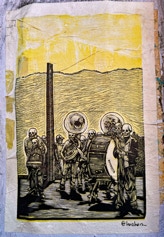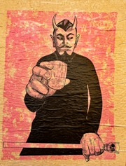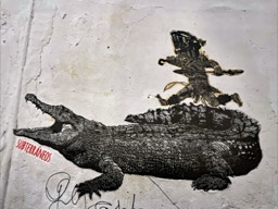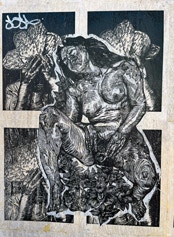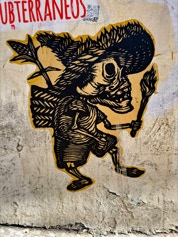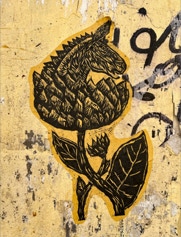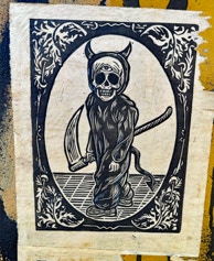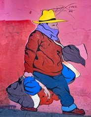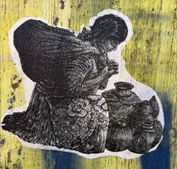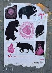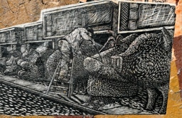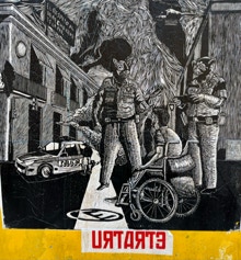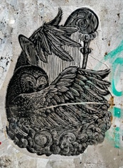 Street artists employ a range of techniques and materials that fit their ideologies. The Revolutionary Union of Art Workers (URTARTE) use wood block prints that are applied to biodegradable rice paper with a traditional press. Multiple copies are made and quickly applied to structures using wheat paste. This allows for an application that doesn’t damage historic buildings. As politically charged pieces are removed by the city, additional prints can swiftly take their place.