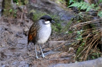 We had to take the same trail back and saw many of the same birds we had going out. Another (or the same) White-throated Quail-Dove was seen very briefly walking ahead on the trail for a short distance before it evaporated into the underbrush. A Chestnut-naped Antpitta popped up out of nowhere – and popped back just as quickly. An added bonus: We found fresh Puma tracks on our muddy trail!
