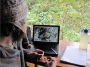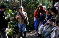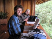 Field research is conducted at all Jocotoco reserves but we rarely got to meet any of the folks collecting data. Tapichalaca proved to be the exception. Two brothers - their parents originally from Wisconsin - were collaborating on an antpitta study under the direction of Harold Greeney from the Yanayacu Biological Station in northern Ecuador (we had met Harold during our 2008 tour). The lads were entering data on their laptops when we bumped into them. They had recently collected video of a Jocotoco Antpitta vocalizing on a nest – the first ever video recorded. We were able to watch part of the video – how exciting! Carol took their photo and got their parent’s email address, promising to send their photo (she did upon our return – the brother’s parents were very pleased).
