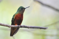 Another of the reserve's specialty species is the Golden-plumed Parakeet. We found a small flock at the bottom of a deep valley where a few nesting boxes have been placed. Their population ranges from Columbia to Peru but are most notably impacted in Ecuador. They are found only in far southern Ecuador in temperate cloud and elfin forests. The birds rely heavily on Podocarpus cones and nest in dead wax palms. Cutting of dead wax palms is impacted largely by the palm's use for Palm Sunday services. Replanted young palms are subject to increased browsing by cattle.